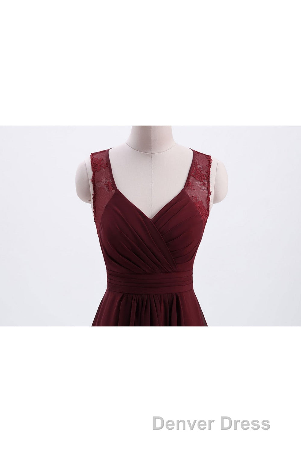 Burgundy Chiffon A-line Pleated Long Bridesmaid Dresses