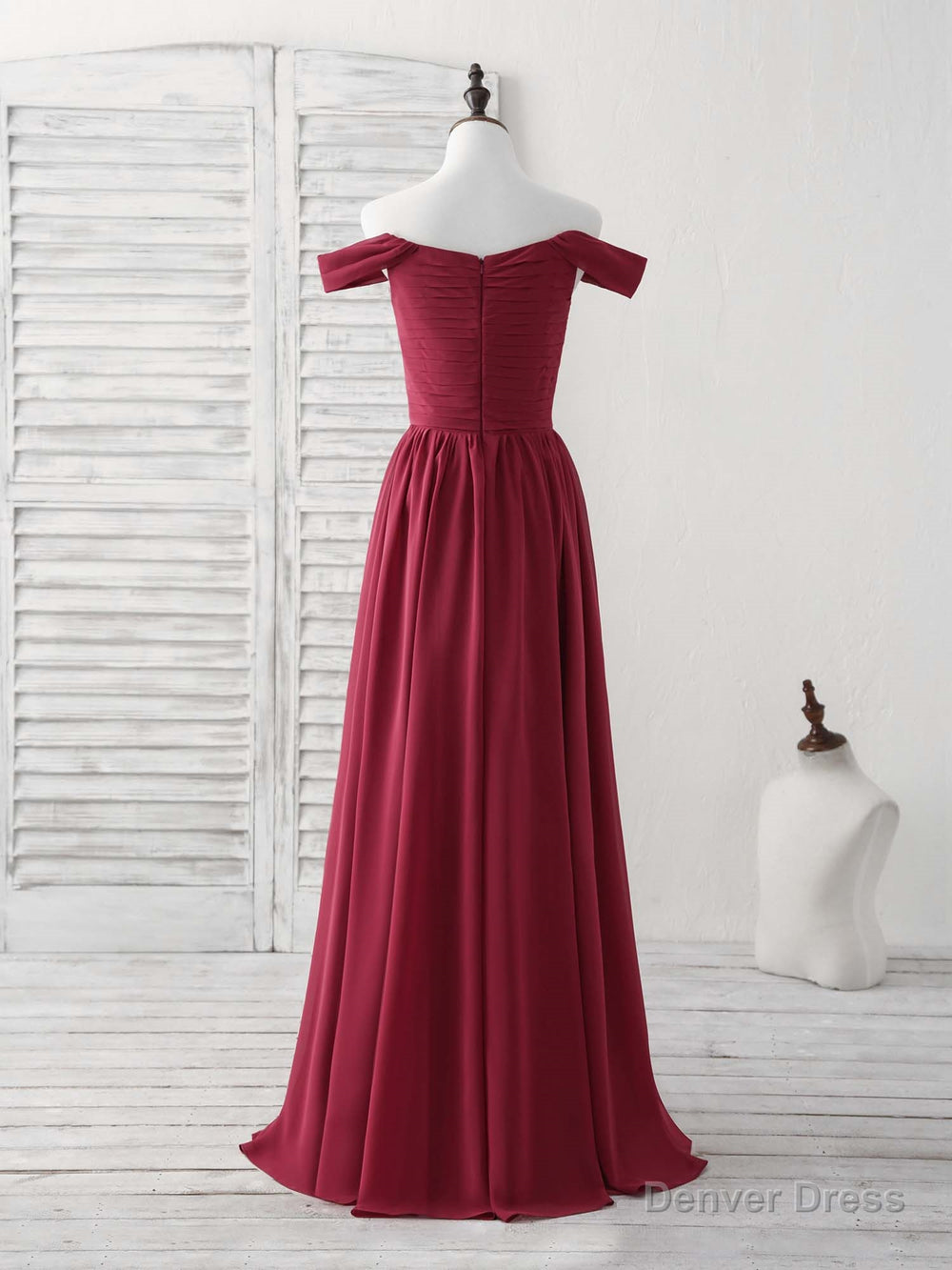 Burgundy Chiffon Off Shoulder Long Prom Dress Burgundy Bridesmaid Dress