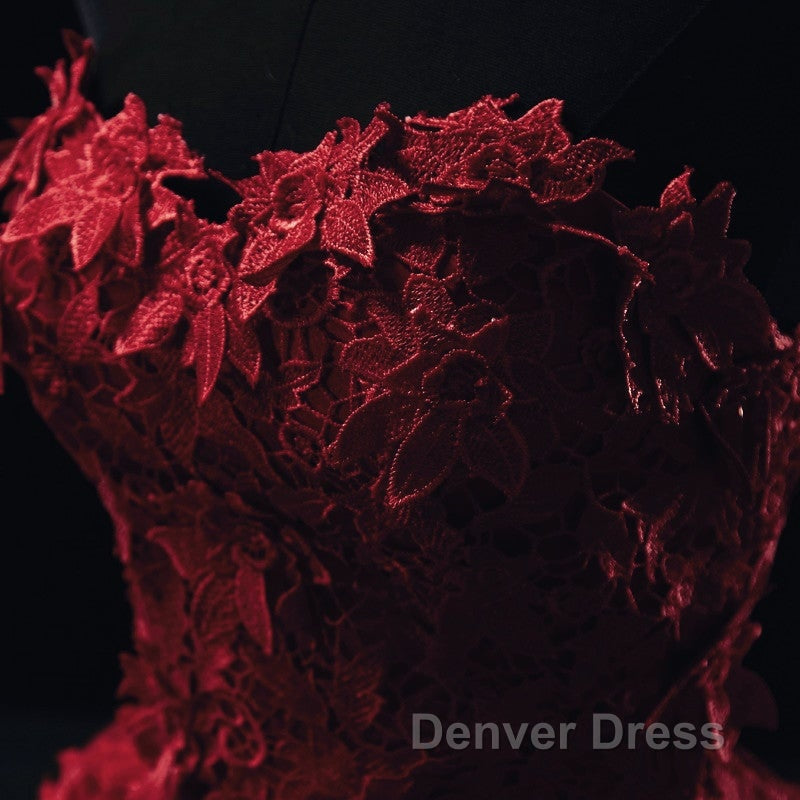 Burgundy Floral Lace Sweetheart Tulle Ball Gown Wedding Dresses