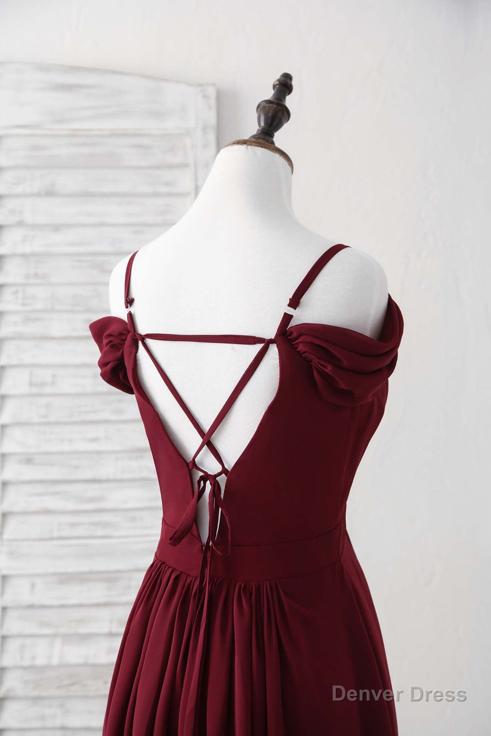 Burgundy Lace Chiffon Long Prom Dress Burgundy Bridesmaid Dress