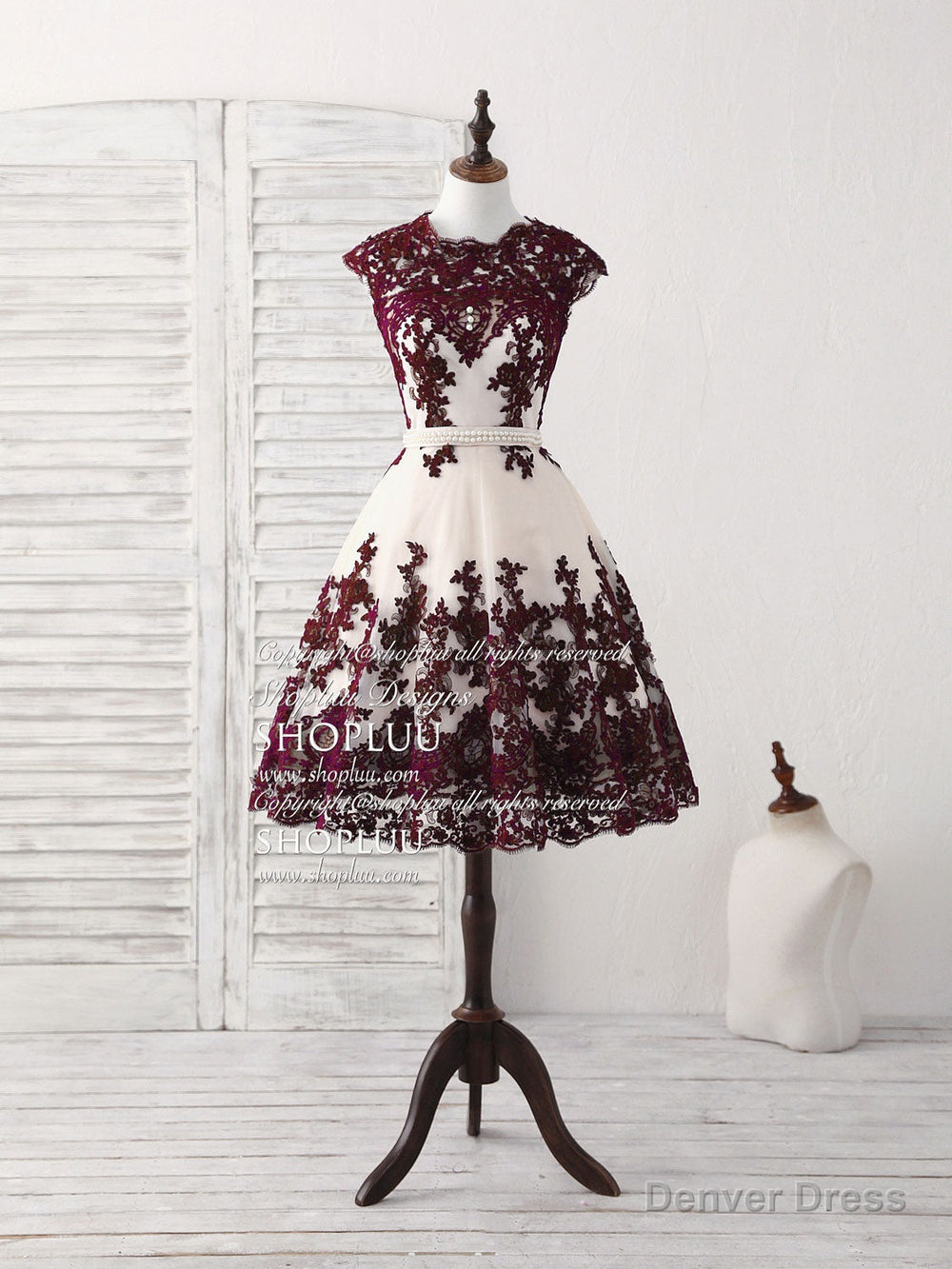 Burgundy Lace Tulle Short Prom Dress Burgundy Bridesmaid Dress