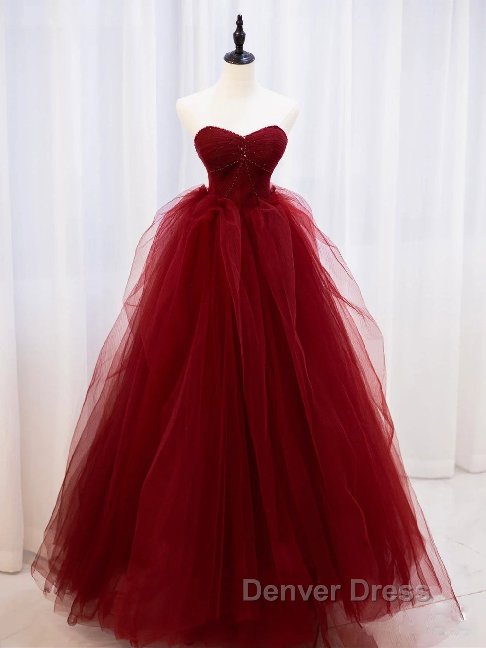Burgundy off shoulder tulle lace long prom Dresses burgundy formal Dresses