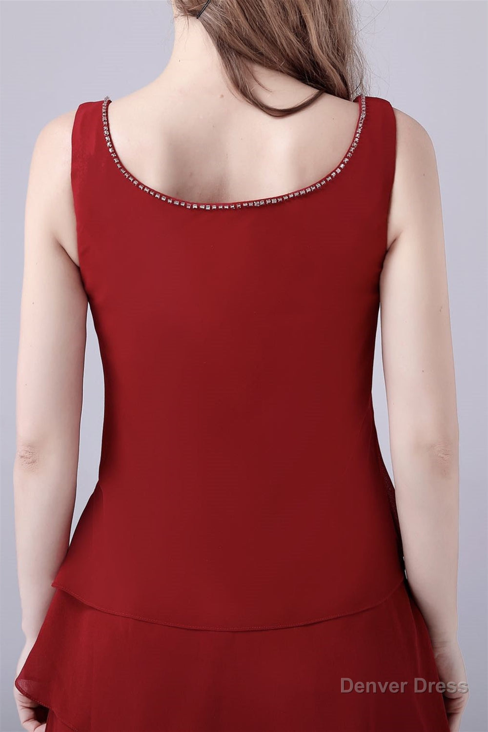 Burgundy Ruffles Chiffon Mother of the Bride Dresses With Jacket