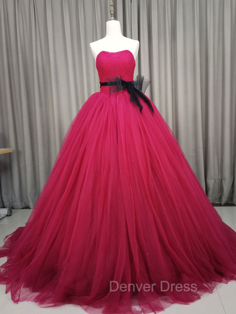 Burgundy Tulle Long Prom Gown, Burgundy Tulle Sweet 16 Dresses
