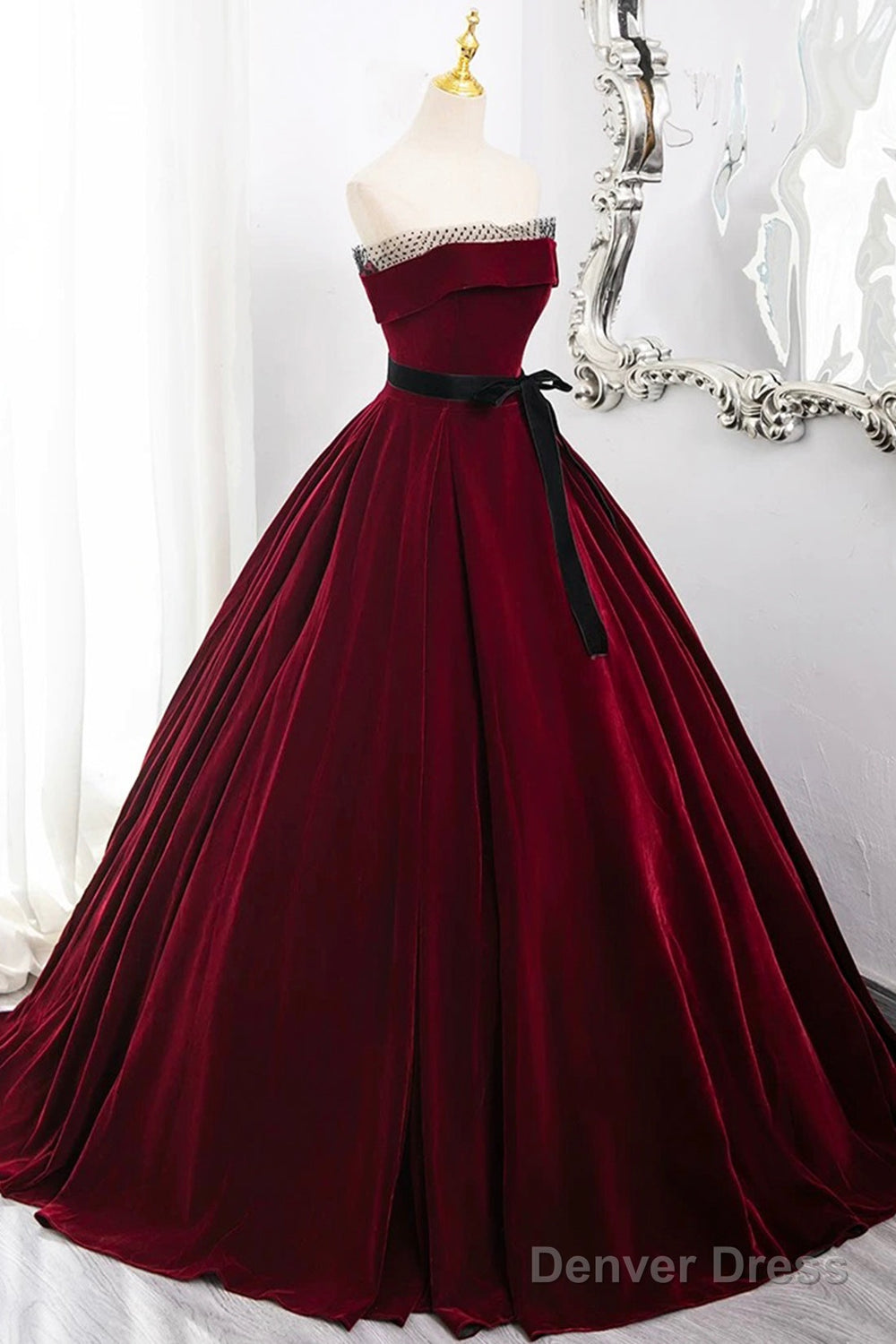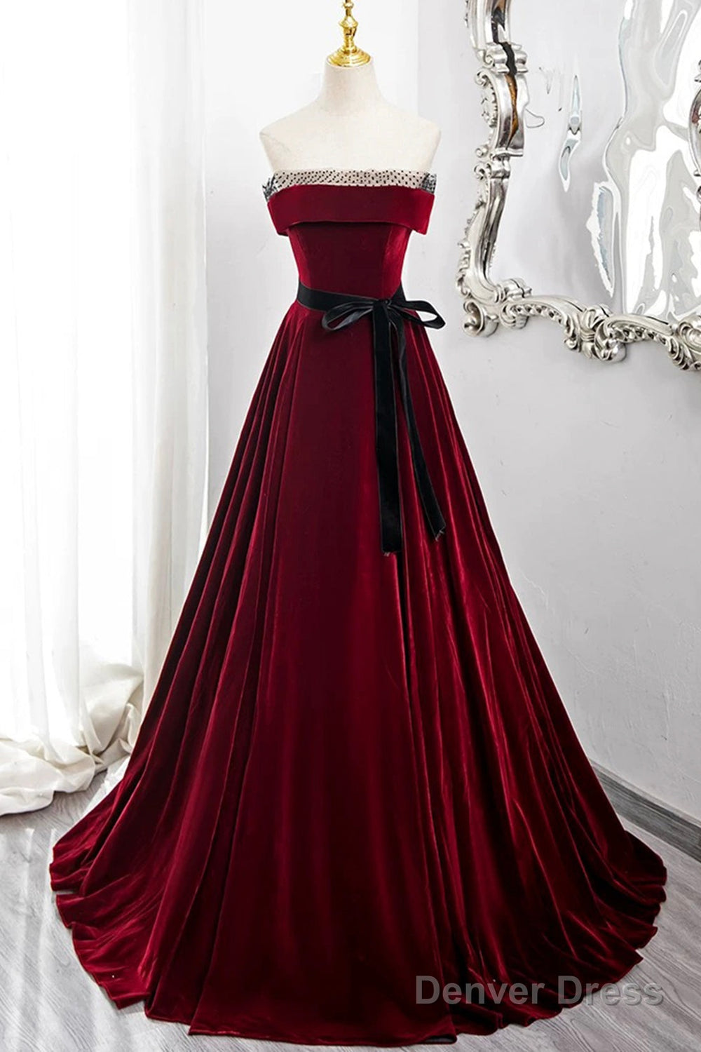 Burgundy Velvet Long Formal Dress, Off The Shoulder Evening Party Dress