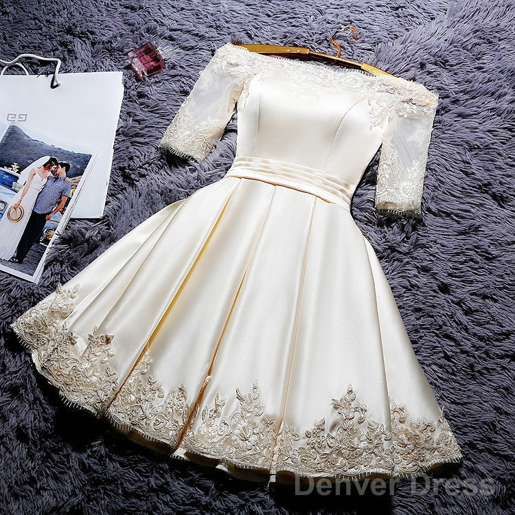 Champagne Knee Length Homecoming Dress, Satin Homecoming Dress