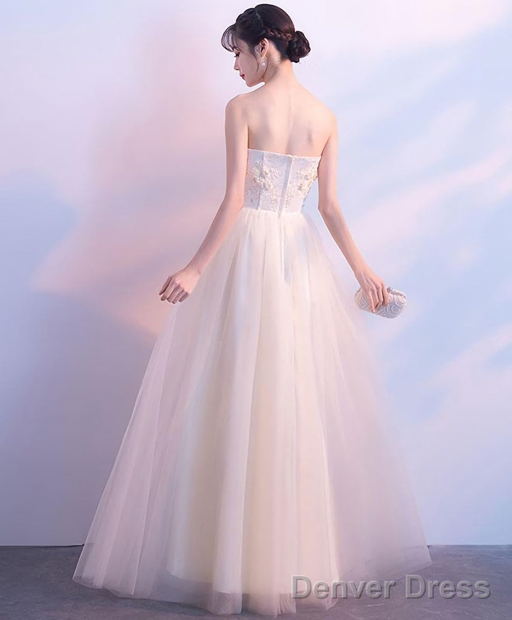 Champagne Lace Tulle Long Prom Dress Champagne Evening Dress 1