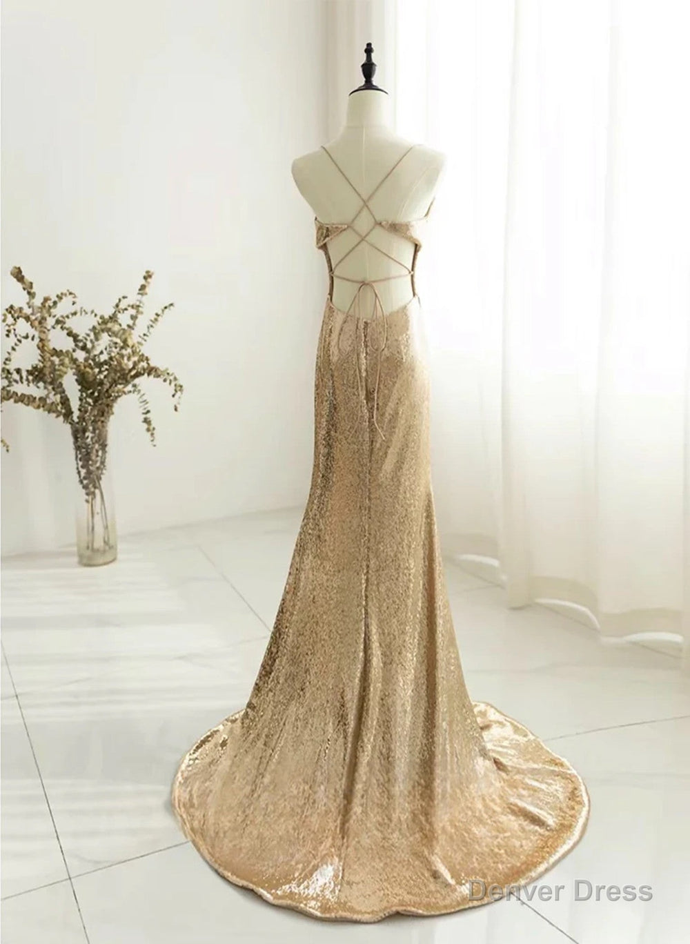 Champagne Sequins Long Prom Dress, Sequins Champagne Formal Dress