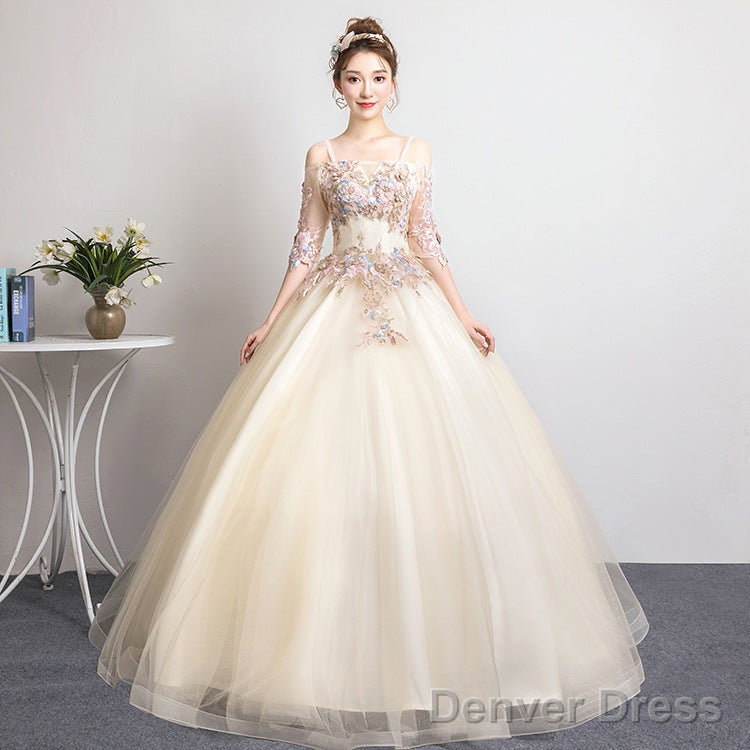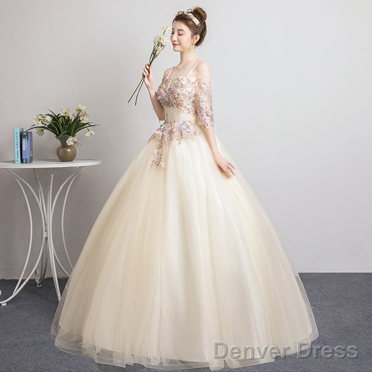 Champagne Sweet 16 Gown Long Party Dress, Straps Evening Formal Dresses