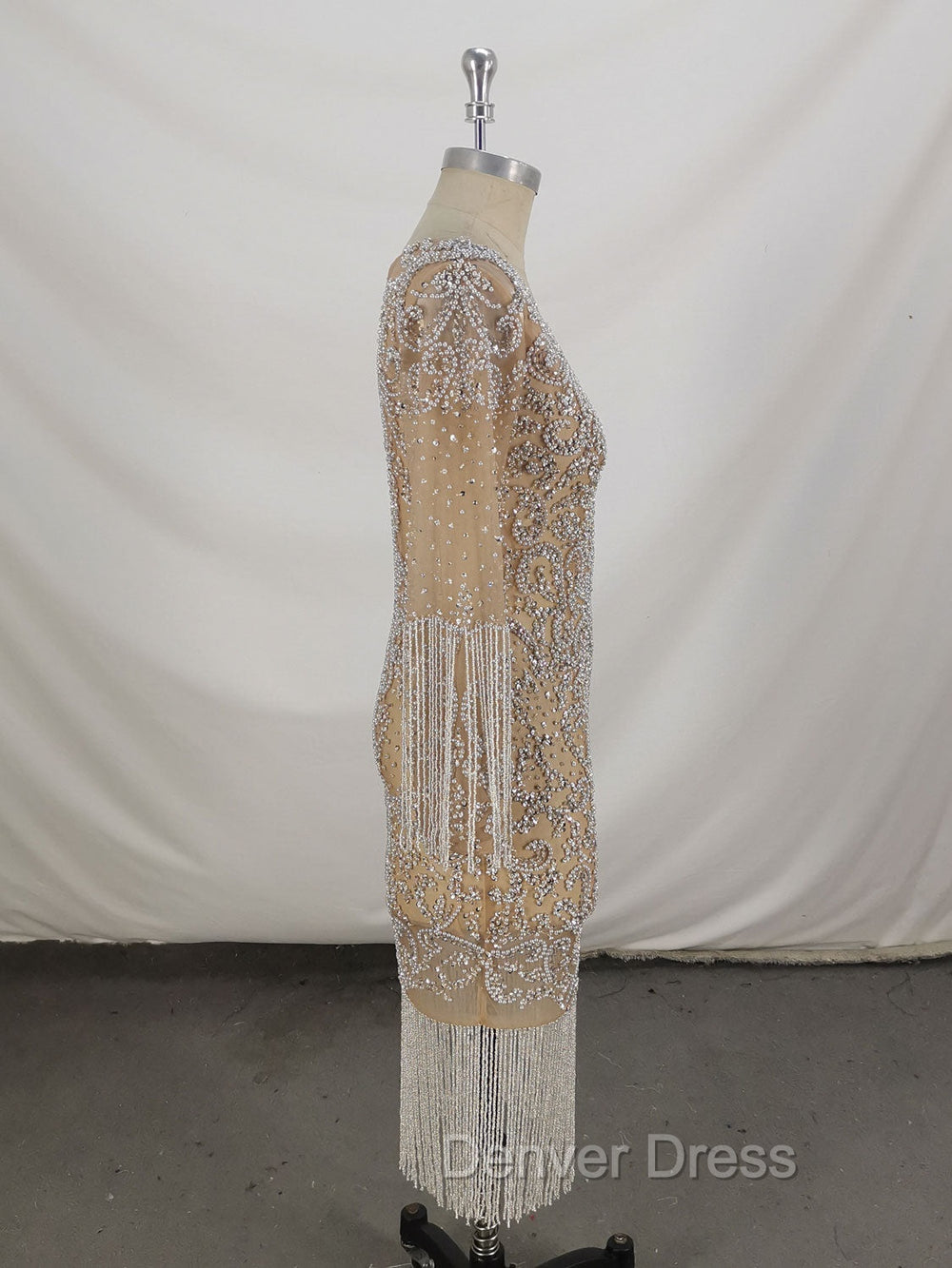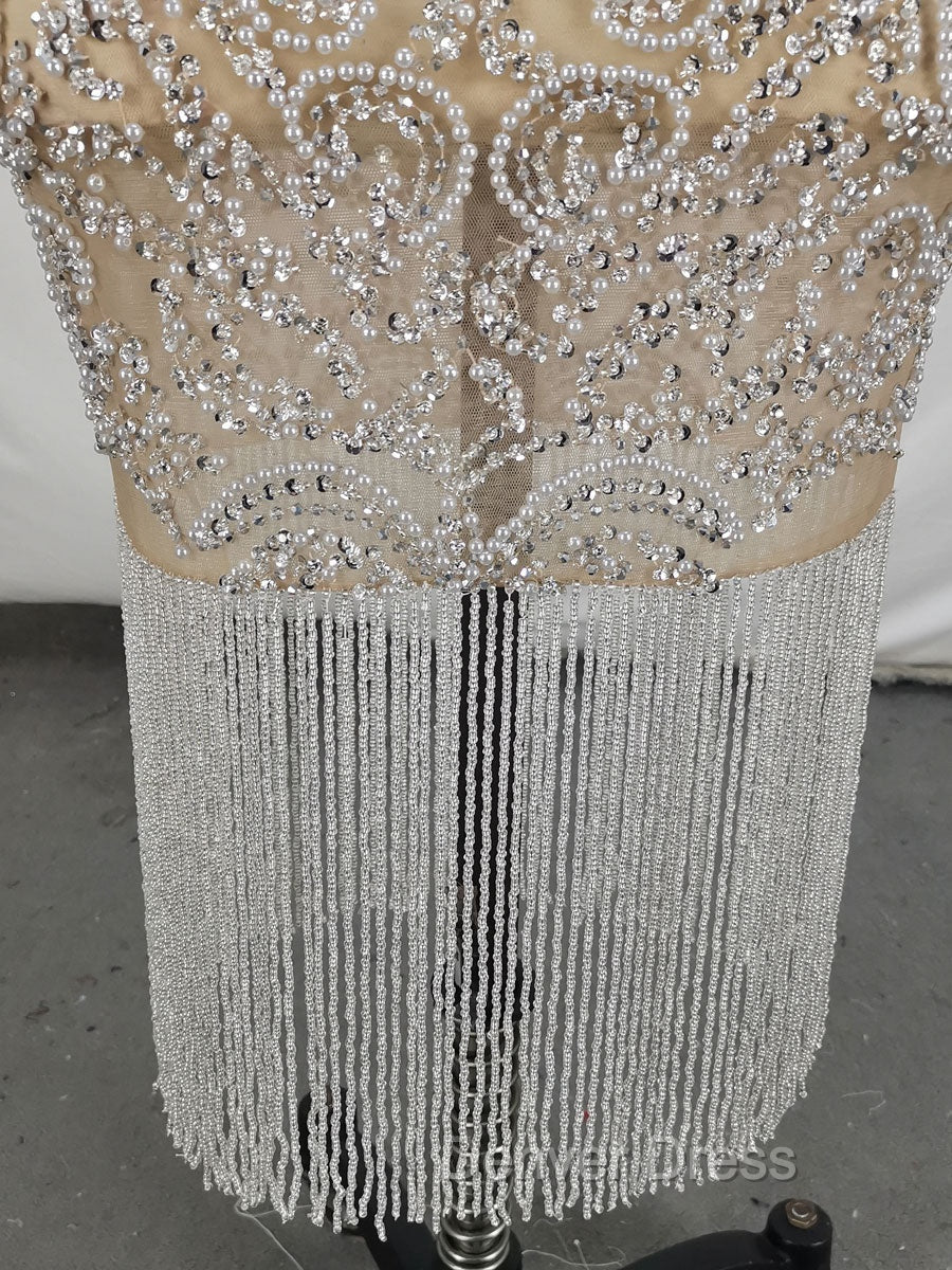 Champagne Tulle Beads Mermaid Short Prom Dresses, Champagne Evening Dresses