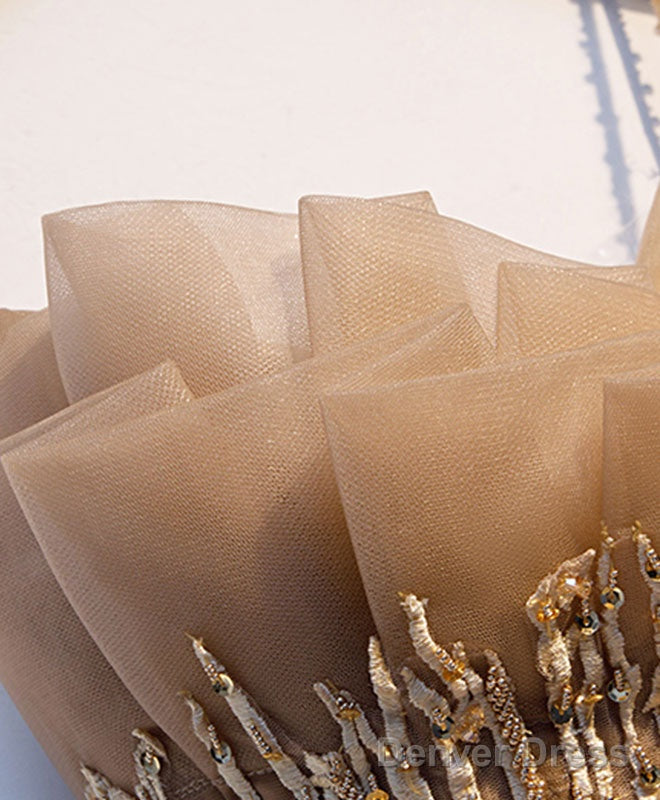Champagne Tulle Lace Long Prom Dress Tulle Lace Formal Dress