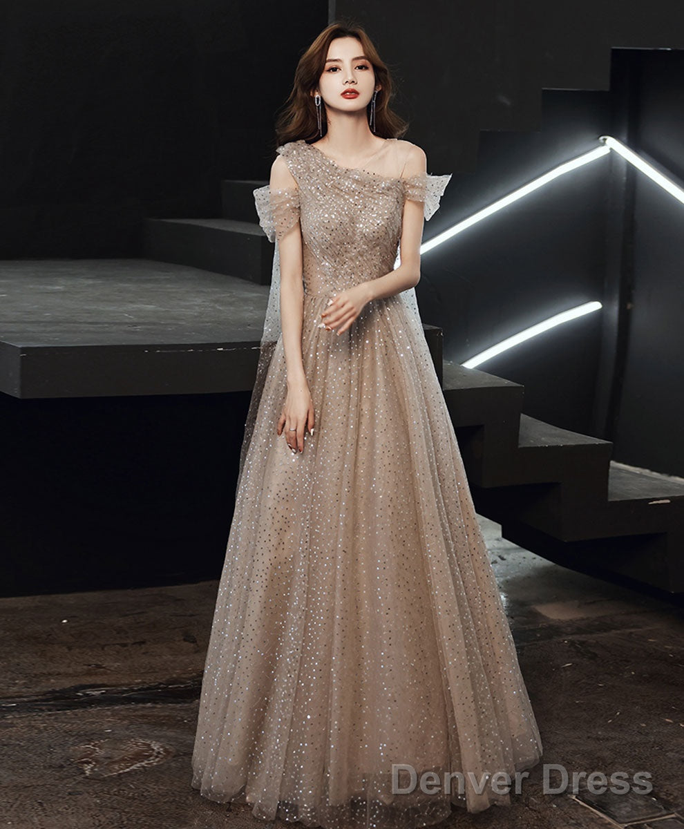 Champagne Tulle One Shoulder Long Prom Dress Tulle Evening Dress