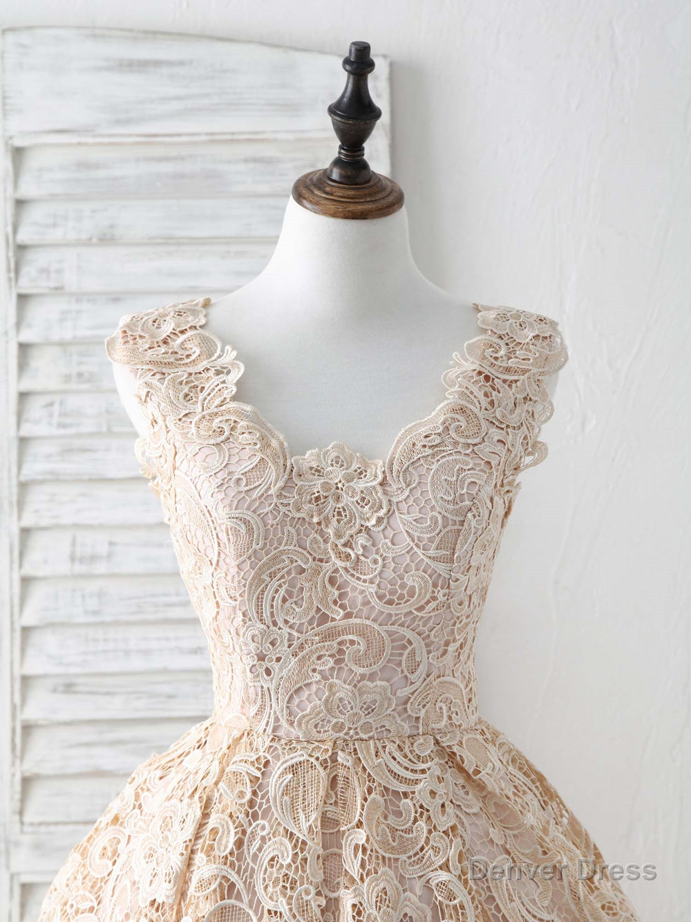 Champagne V Neck Lace Short Prom Dress Champagne Bridesmaid Dress