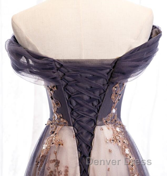 Charming A-Line Tulle Long Off Shoulder Party Dresses, Prom Dresses