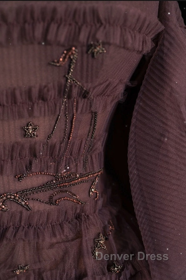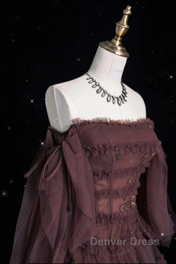 Chic Ball Gown Off The Shoulder Long Sleeves Evening Dresses Tulle Long Prom Dresses