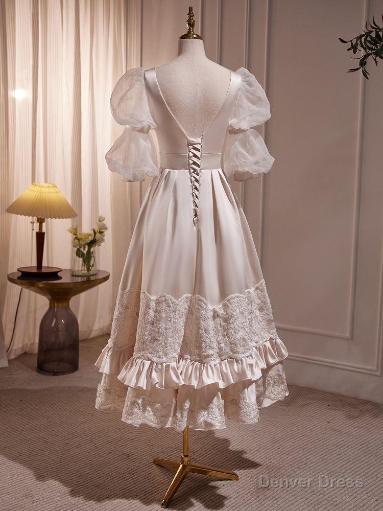 Chic Bubble Sleeves Round Neck Prom Dresses