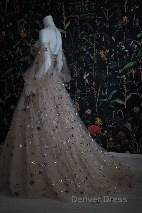 Chic Long Sweetheart Front Split Star Prom Dresses With Sleeves