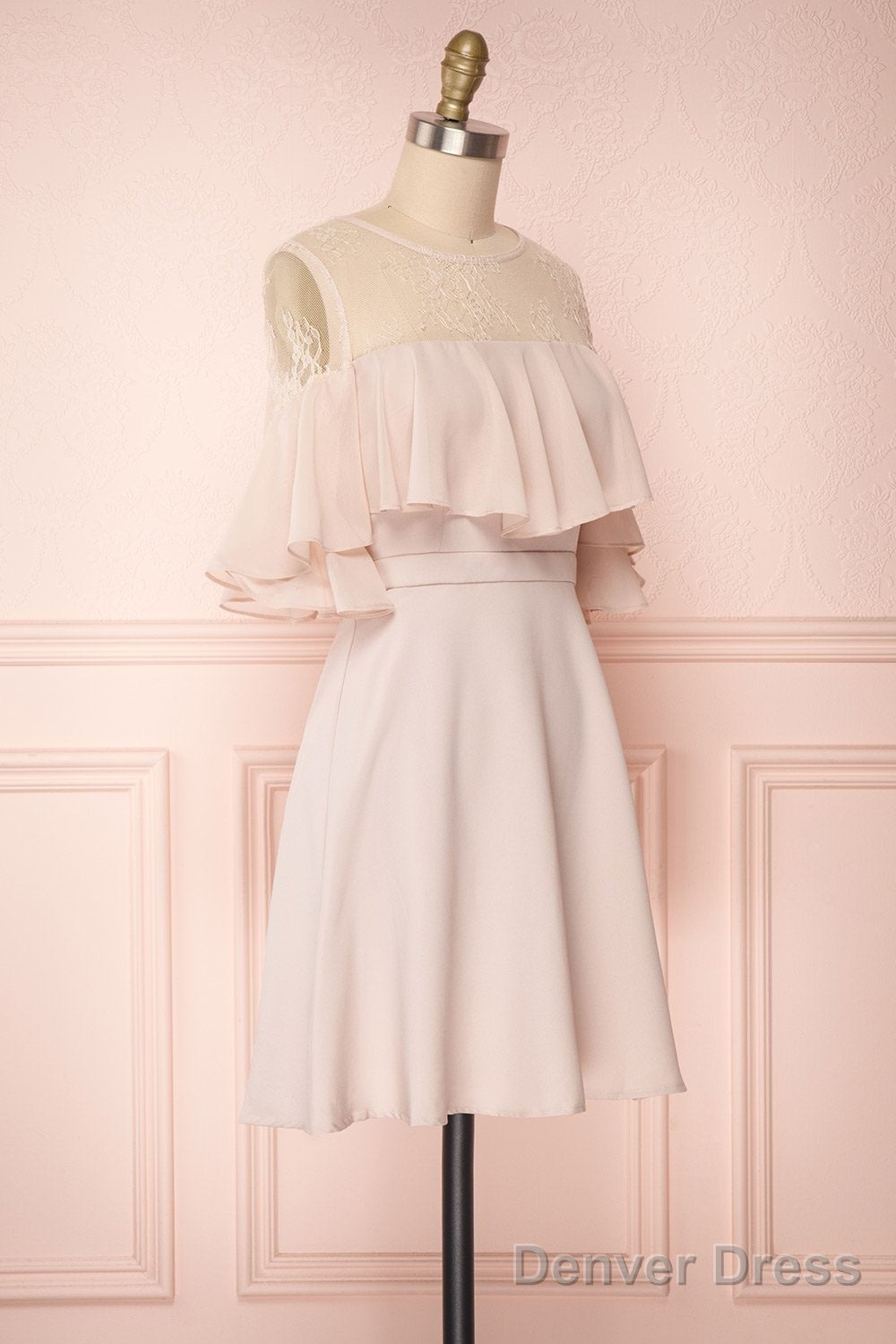 Chiffon 3/4 Sleeves Appliques Lace Bridesmaids Dresses