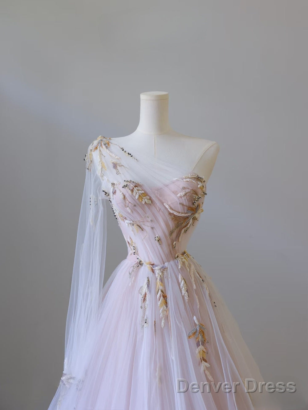 Classy A Line One Shoulder Tulle Lace Long Evening Dress Prom Dresses