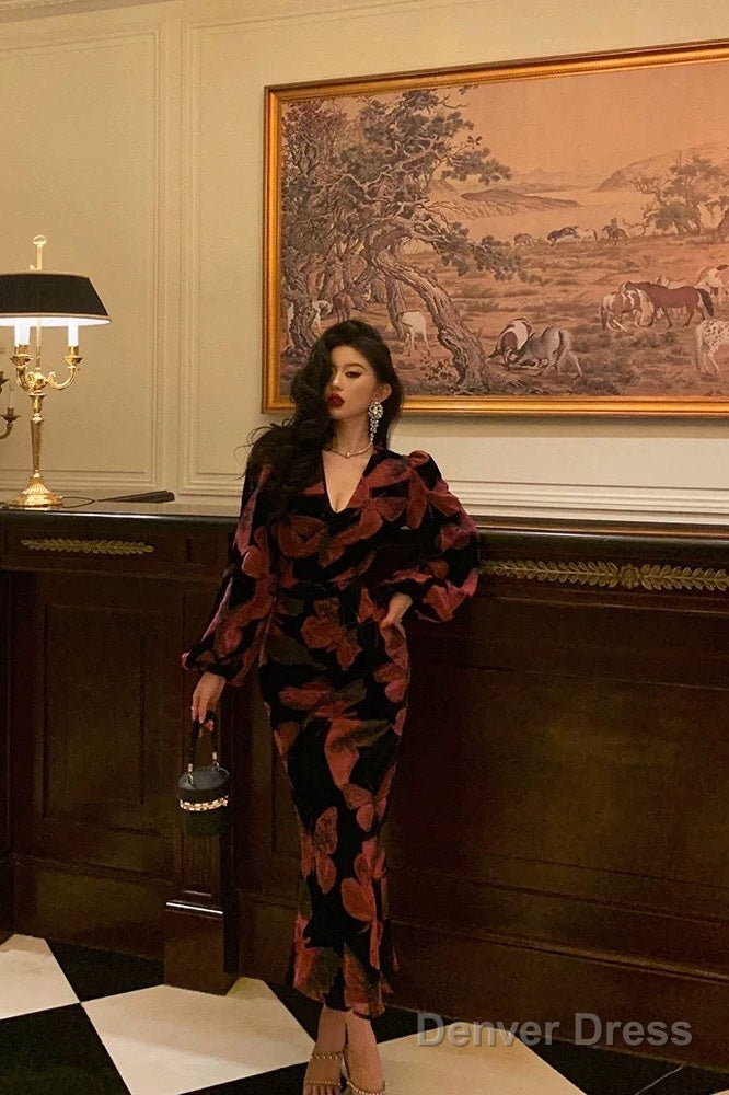 Classy Mermaid V Neckline Long Sleeves Black Velvet Pink Butterfly Prom Dresses Birthday Outfits