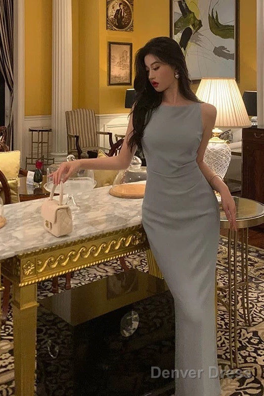 Classy Sheath Scoop Neckline Blue Prom Dresses Birthday Outfits Evening Gown
