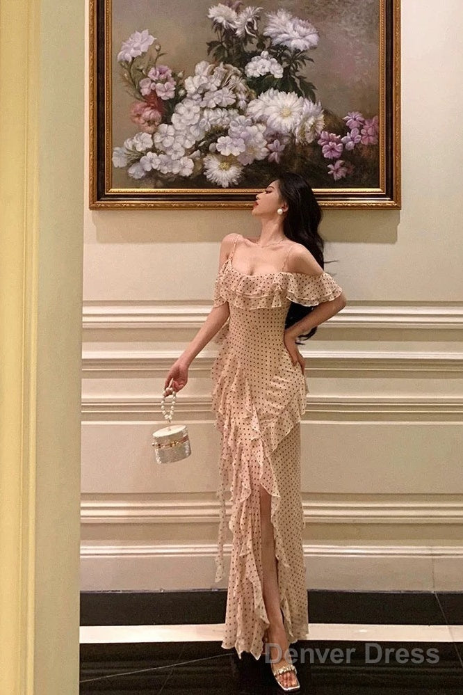Classy Sheath Spaghetti Straps Floral Long Slit Prom Dresses Birthday Outfits Evening Gown