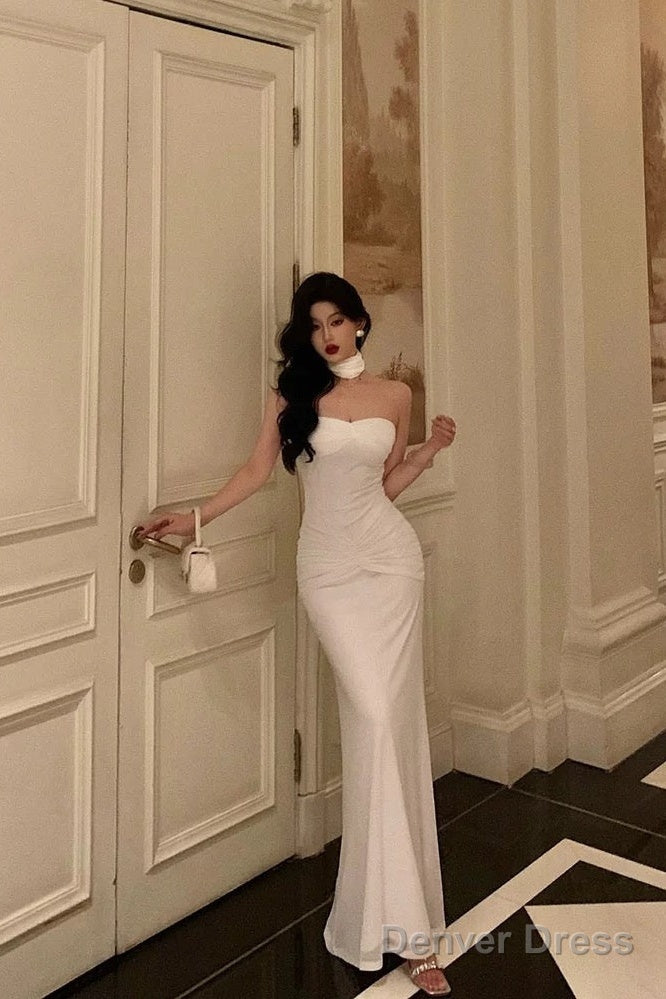 Classy Sheath Strapless Neckline White Prom Dresses Birthday Outfits Evening Gown