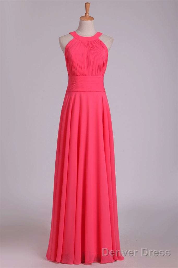 Crew Neck Watermelon Chiffon Long Bridesmaid Dress