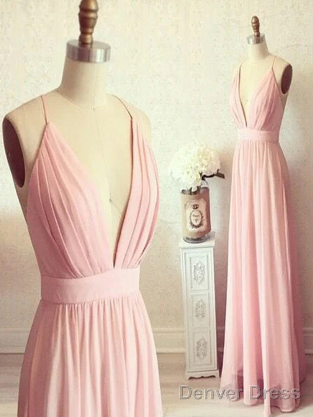 Custom Made A Line V Neck Backless Pink Long Prom Dress, V Neck Backless Formal Dress, Bridesmaid Dress