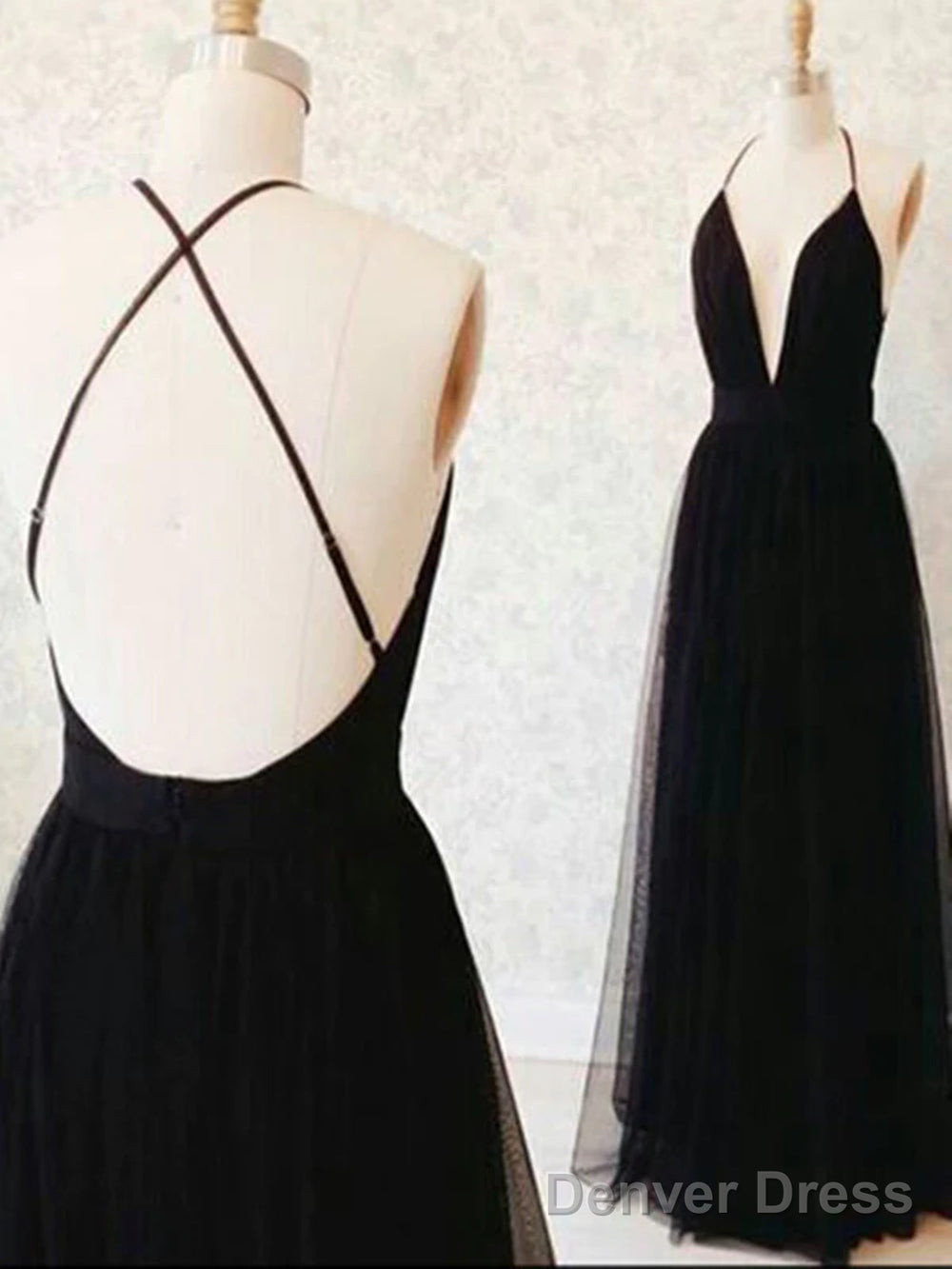 Custom Made A Line V Neck Black Backless Prom Dresses, Black Backless Formal Dresses, Bridesmaid Dresses