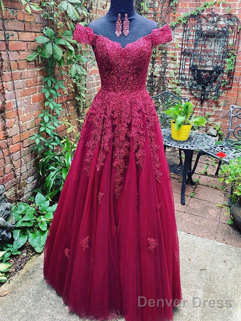 Custom Made Off Shoulder Burgundy Lace Prom Dresses, Off The Shoulder Burgundy Lace Formal Bridesmaid Dresses