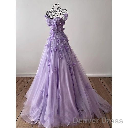 Cute A Line Floor Length Lilac Prom Dresses With Lace