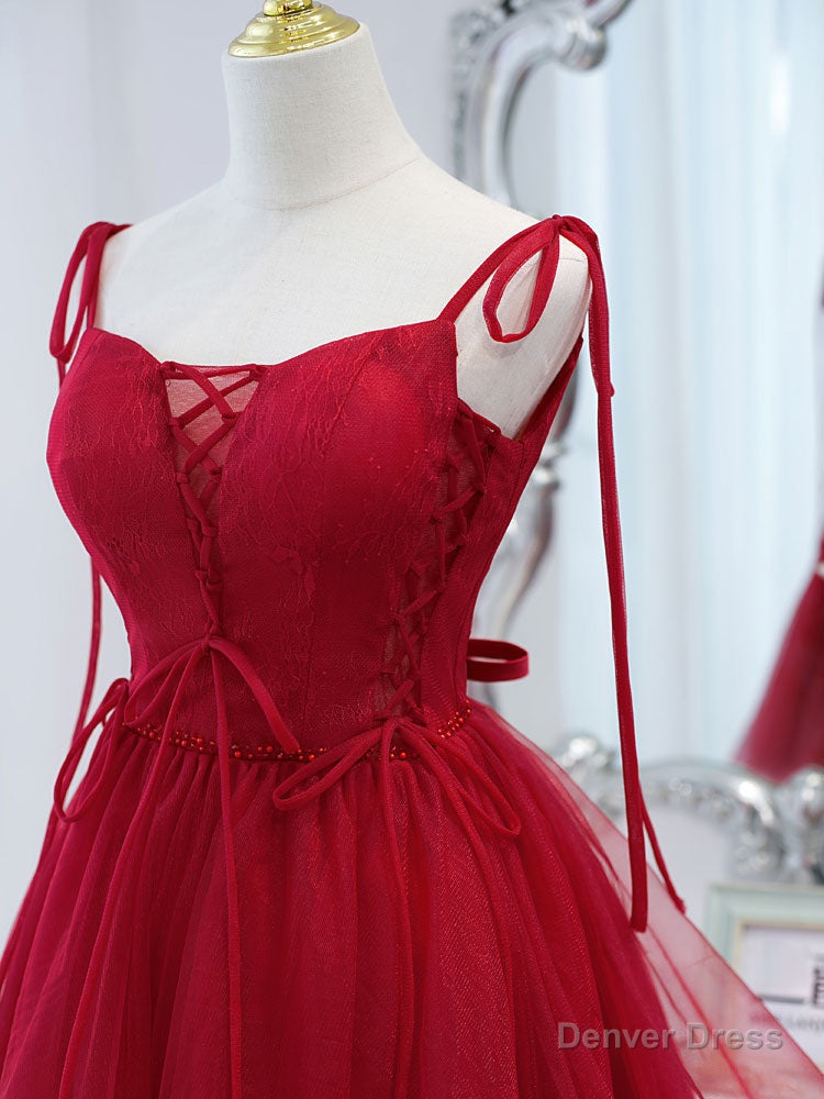 Cute Burgundy Tulle Lace Short Prom Dress, Lace Burgundy Puffy Homecoming Dress