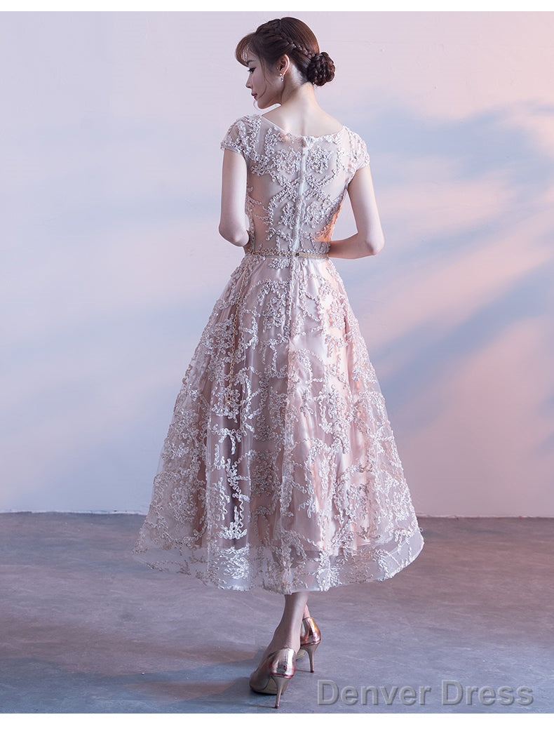 Cute Cap Sleeves Lace Tea Length Bridesmaid Dress, Lovely Bridesmaid Dress
