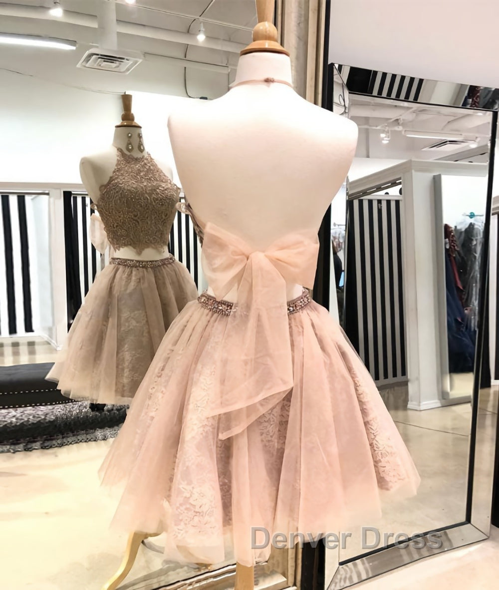 Cute champagne tulle lace short prom Dresses, homecoming Dresses