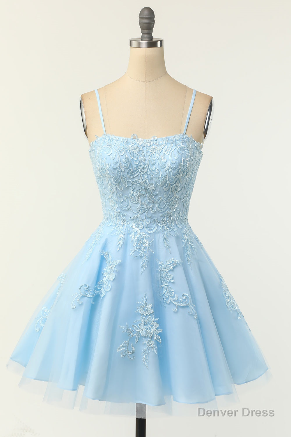 Cute Glitter Blue Homecoming Dresses A Line Sequins Short Prom Dresses with Appliques