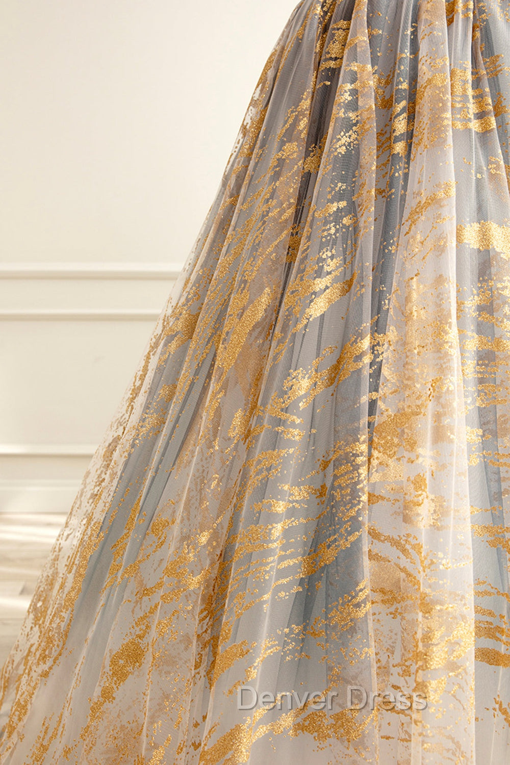 Cute Gradient Tulle Long Formal Dresses, A-Line Strapless Prom Dresses Evening Dresses