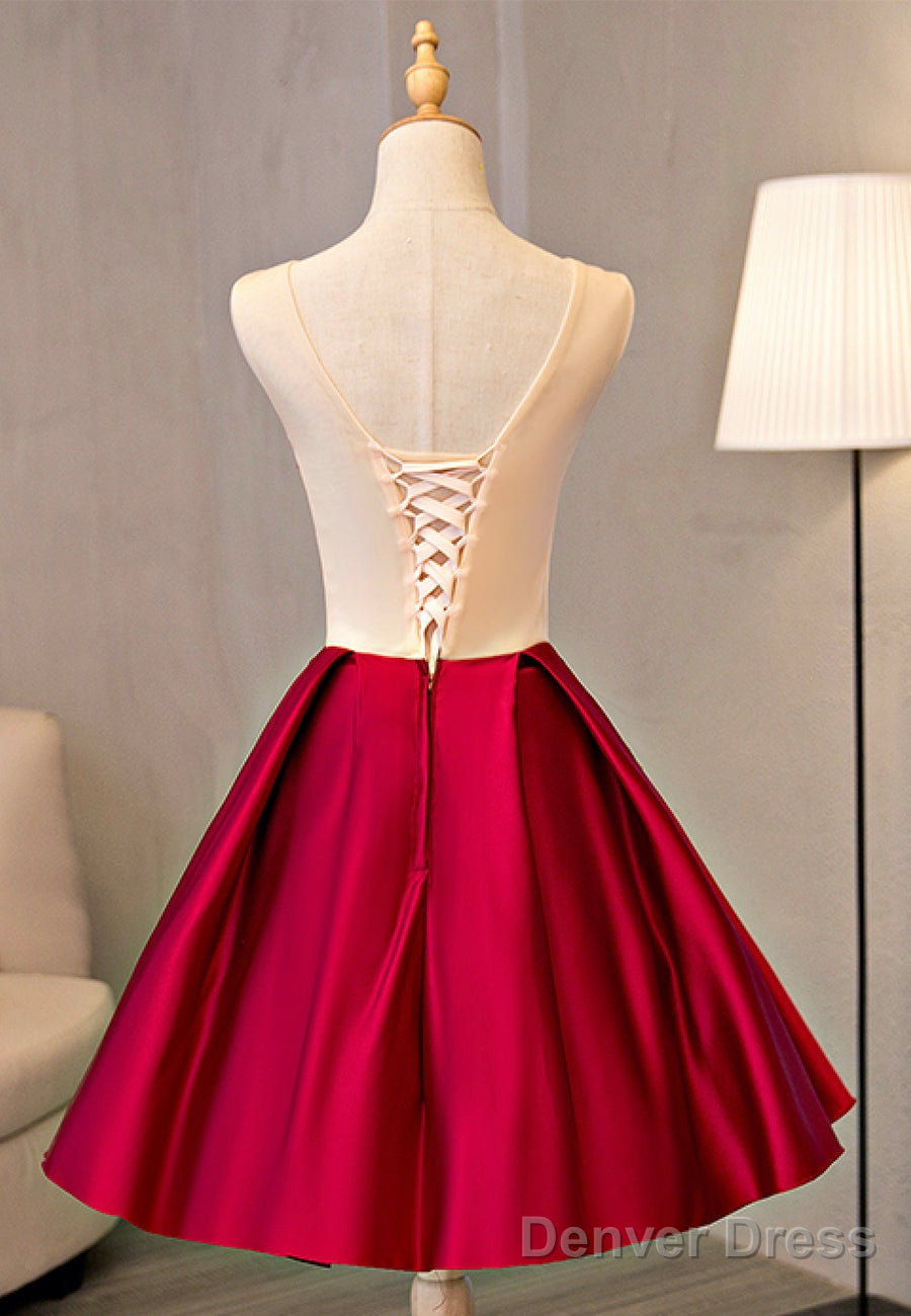 Cute Saitn Lace Short Prom Dresses, A-Line Party Dresses