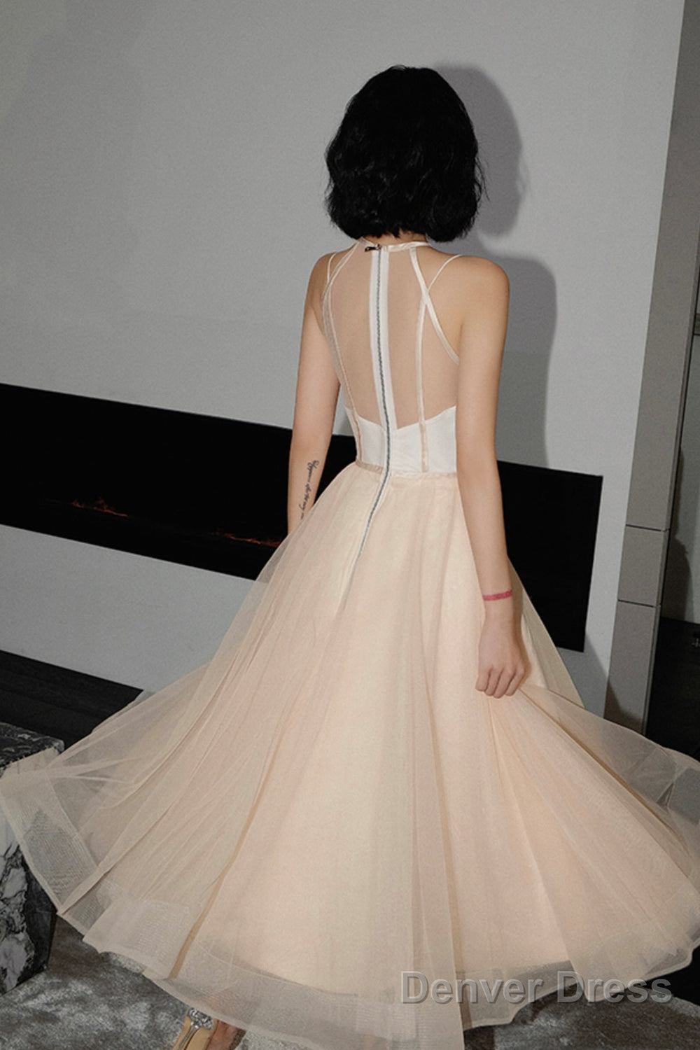Cute Tulle See Through Short Prom Dress Champagne Evening Dress