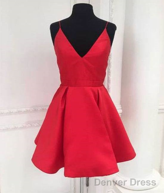 Cute V Neck Red Short Prom Dress, Red Homecoming Dress