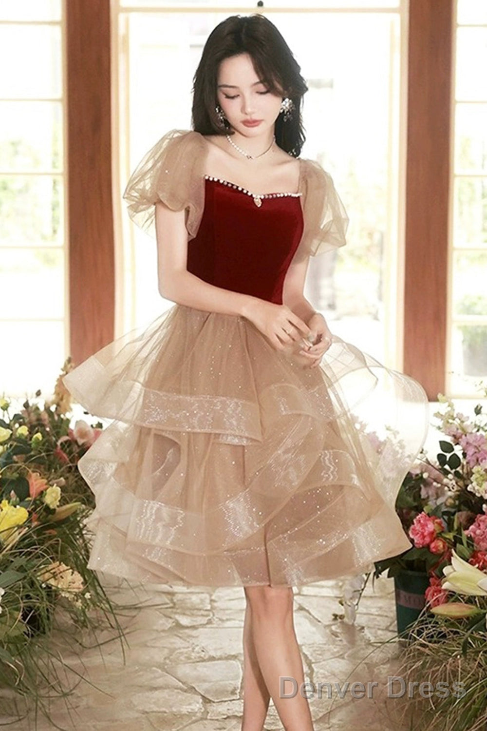 Cute Velvet Tulle Short Prom Dress, Beautiful Party Dress Homecoming Dress