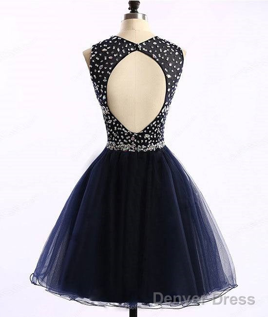 Dark Blue Tulle Short Prom Dress, Cute Homecoming Dress