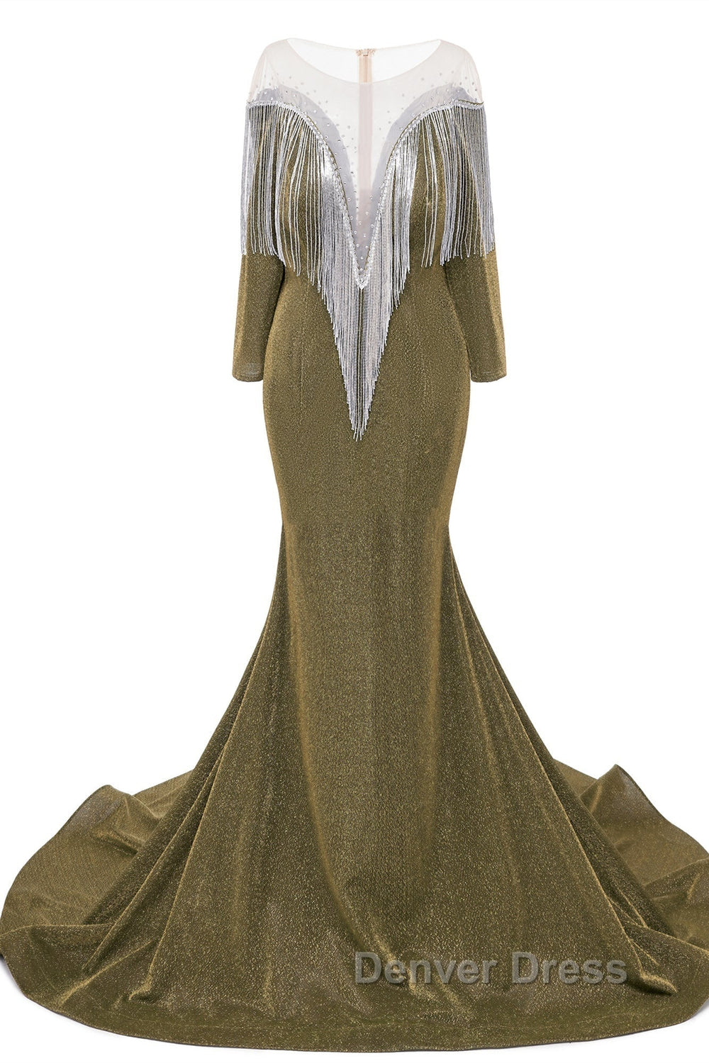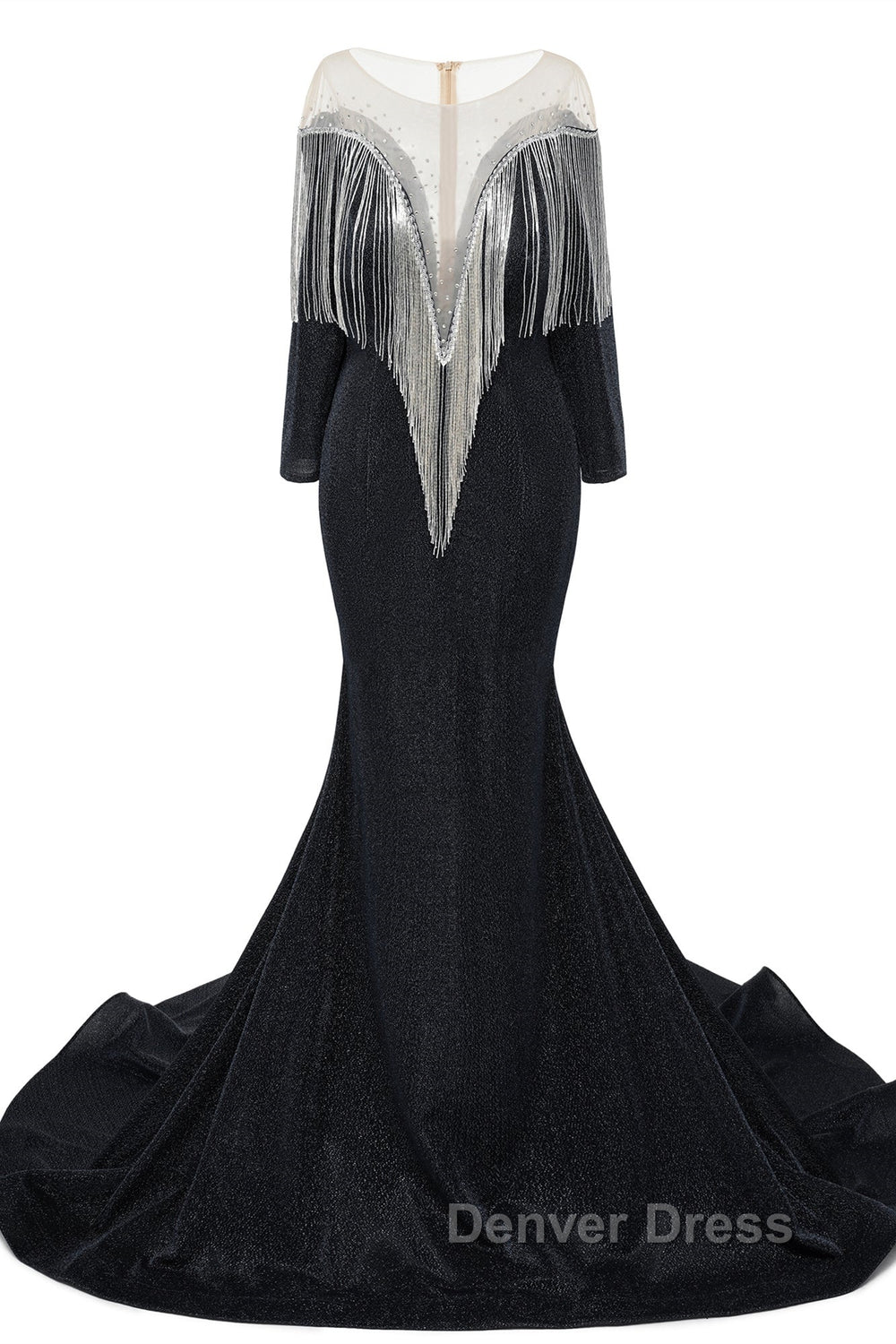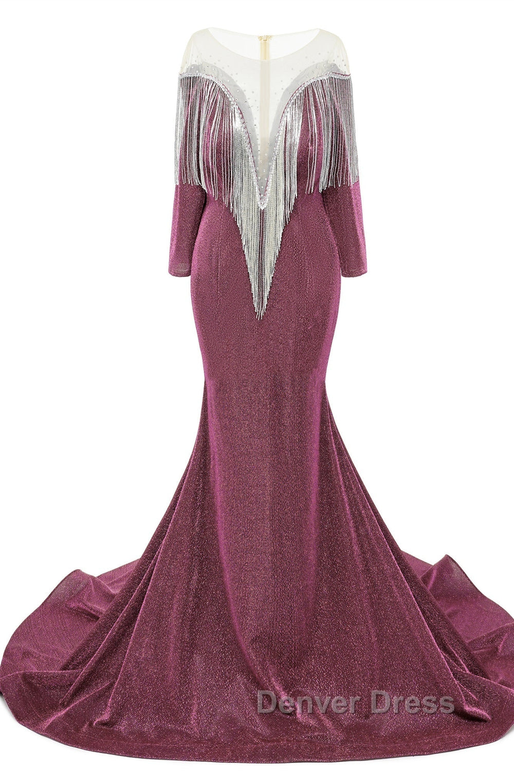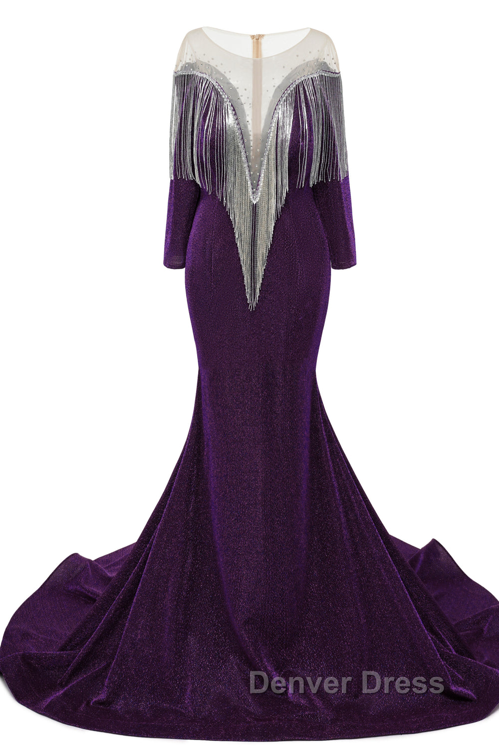 Deep V-neck Shiny Royal Blue Long sleeves Mermaid Prom Dresses