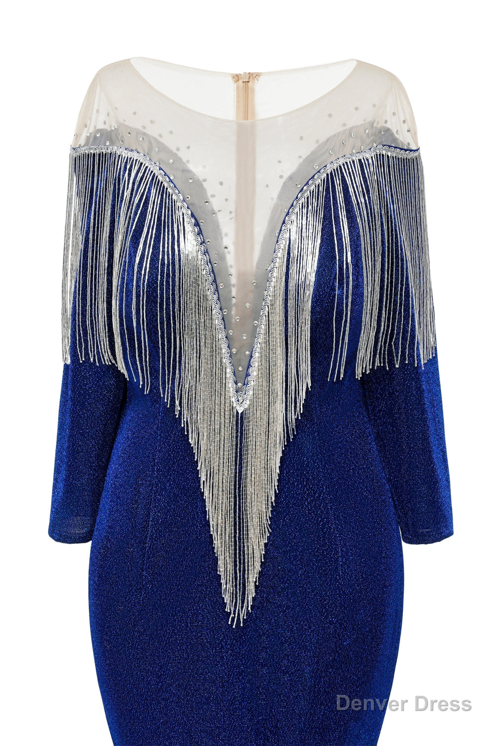 Deep V-neck Shiny Royal Blue Prom Dresses Long sleeves Mermaid Evening Party Dresses