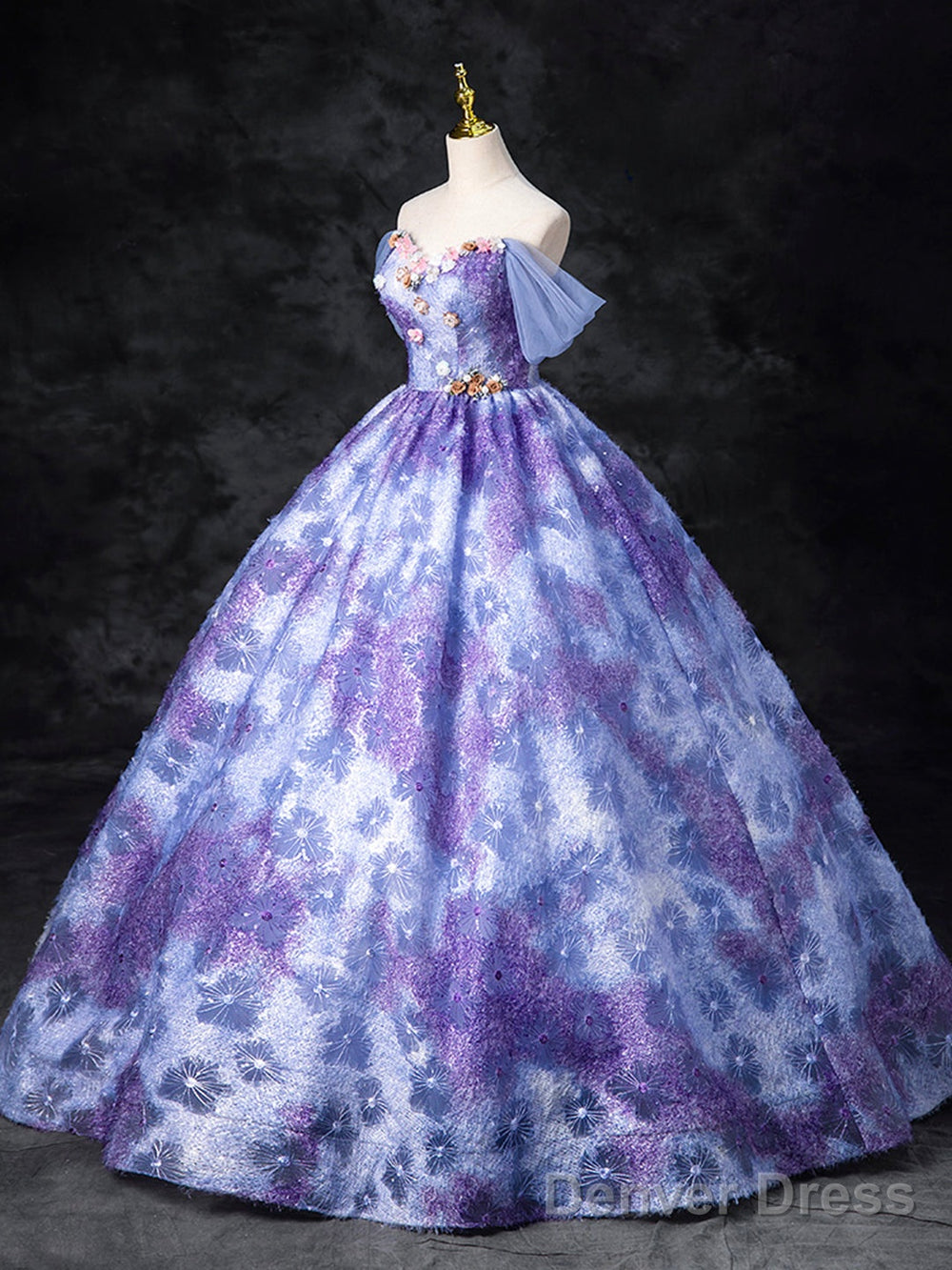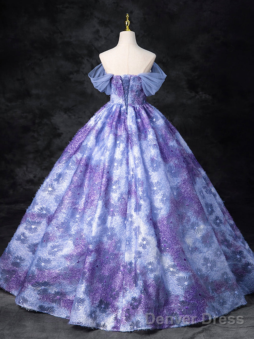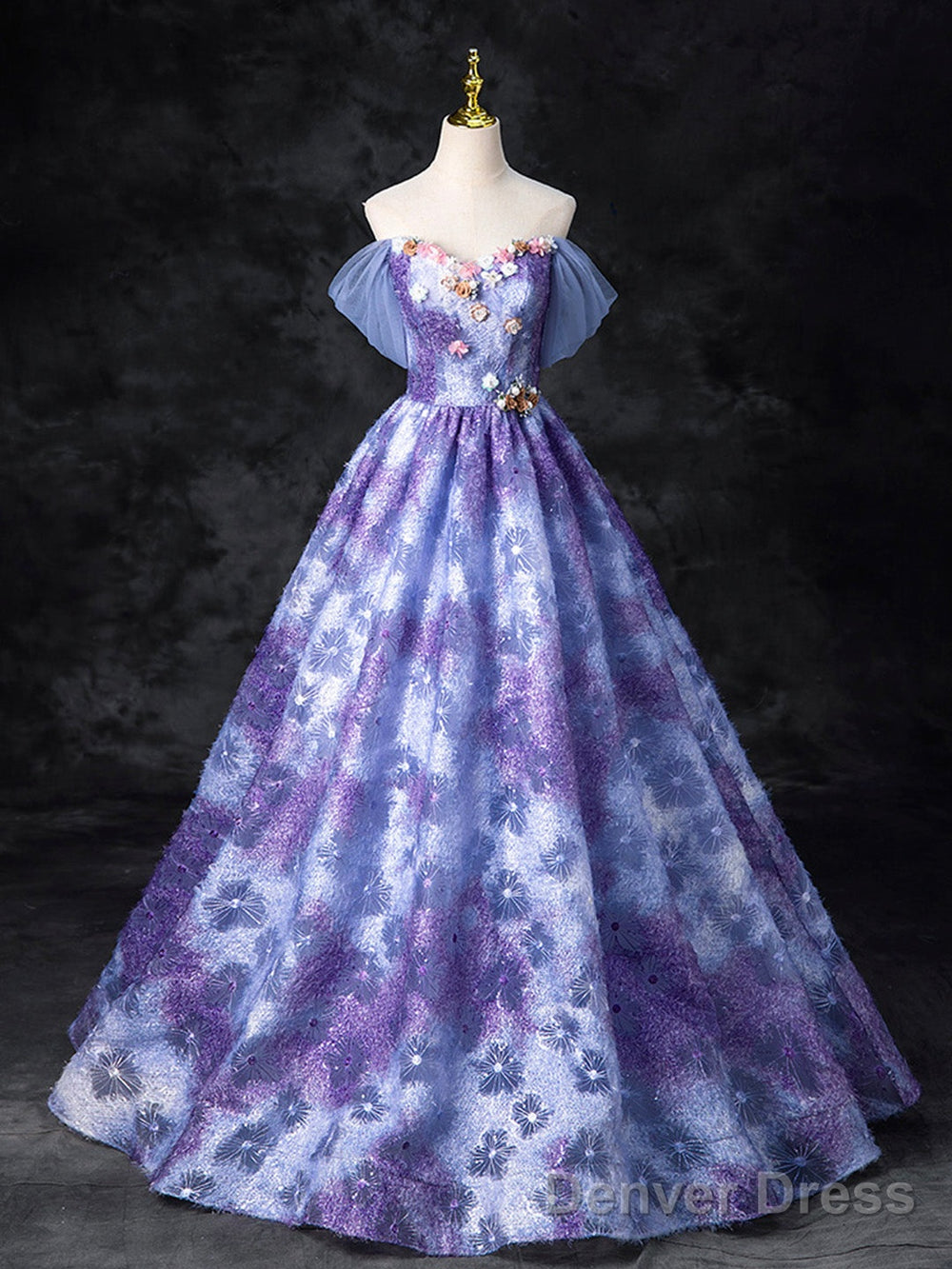 Dreamy Colorful Flowers Purple/Blue Prom Dress, Fairy Off The Shoulder A-Line Princess Party Gown