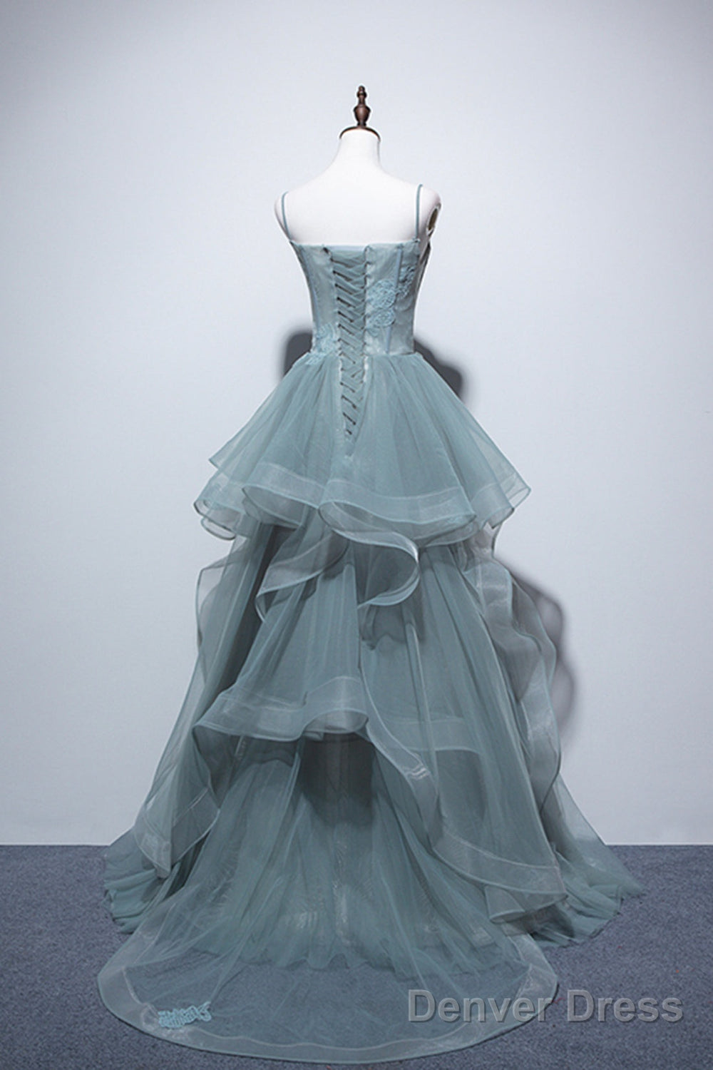 Dusty Green Tulle Lace Floor Length Formal Dress, Beautiful A-Line Evening Party Dress