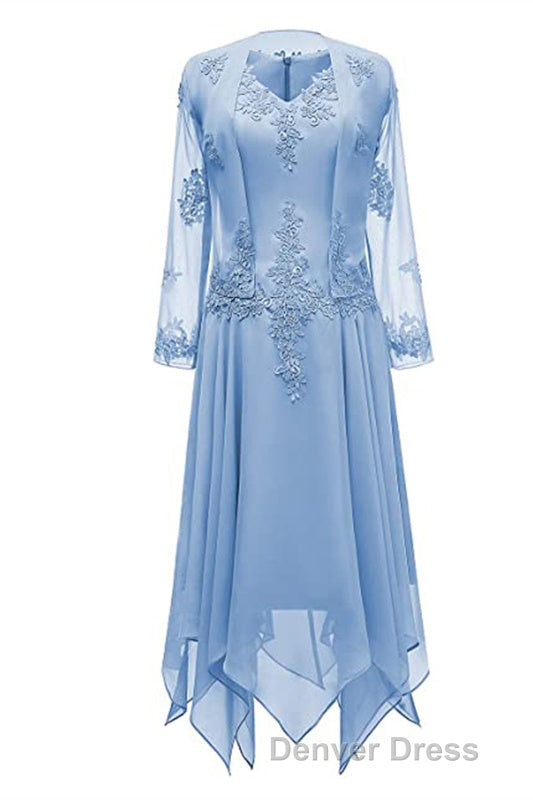 Dusty Pink Two-Piece V-Neck Appliques Mother of the Bride Dresses