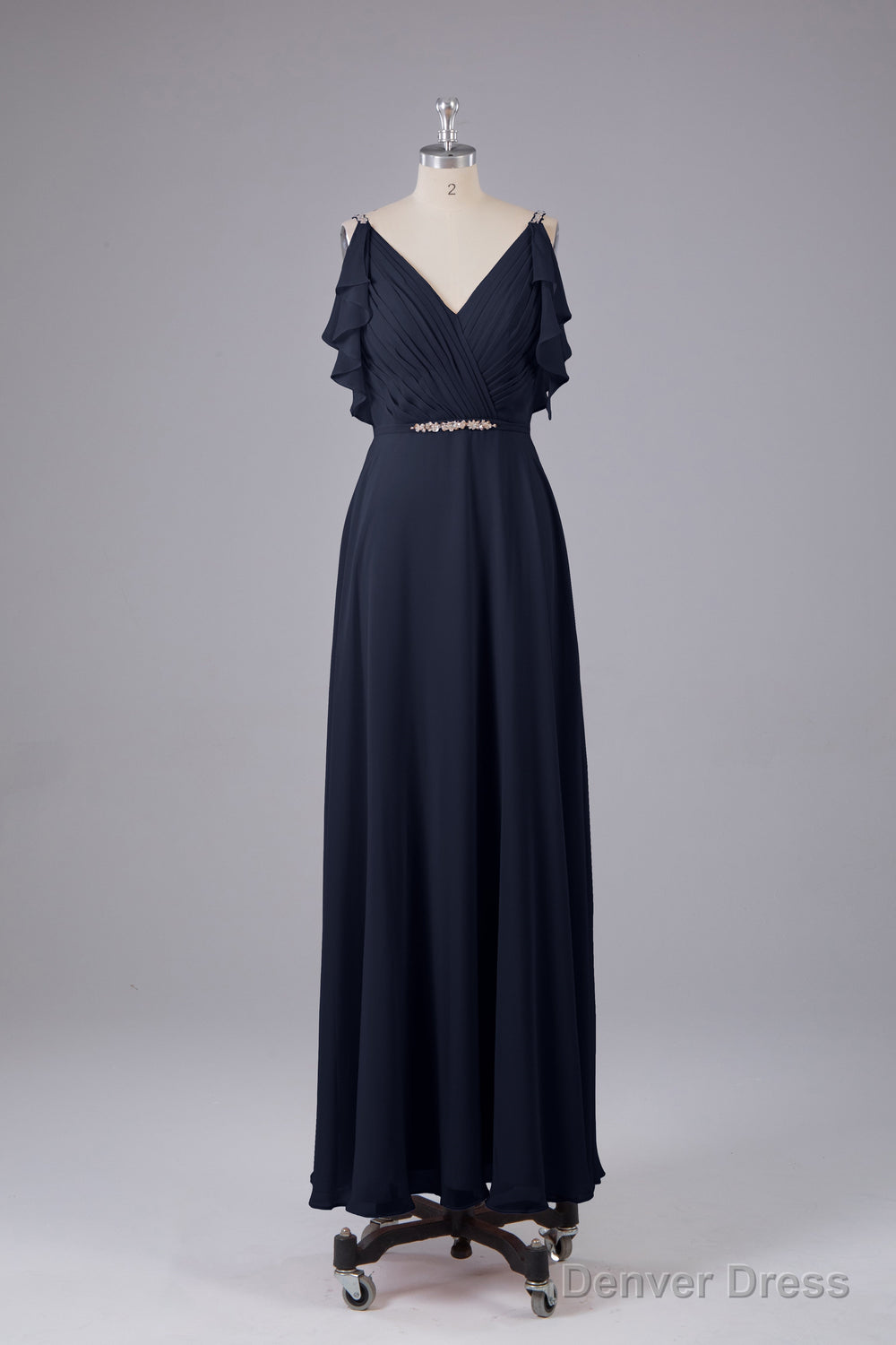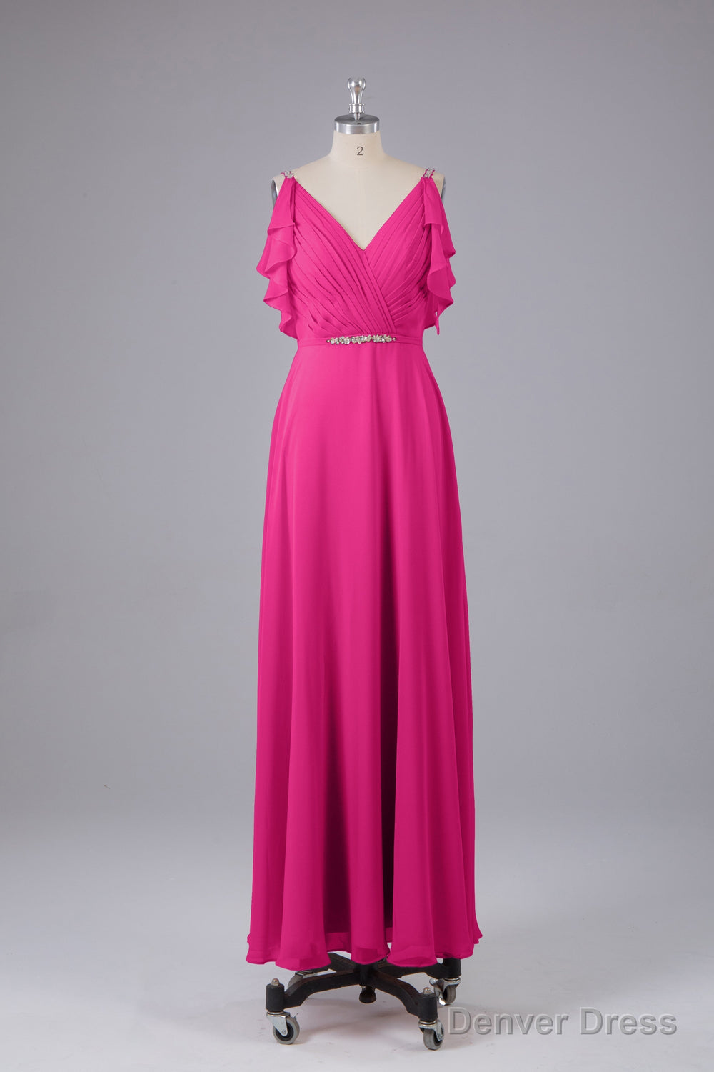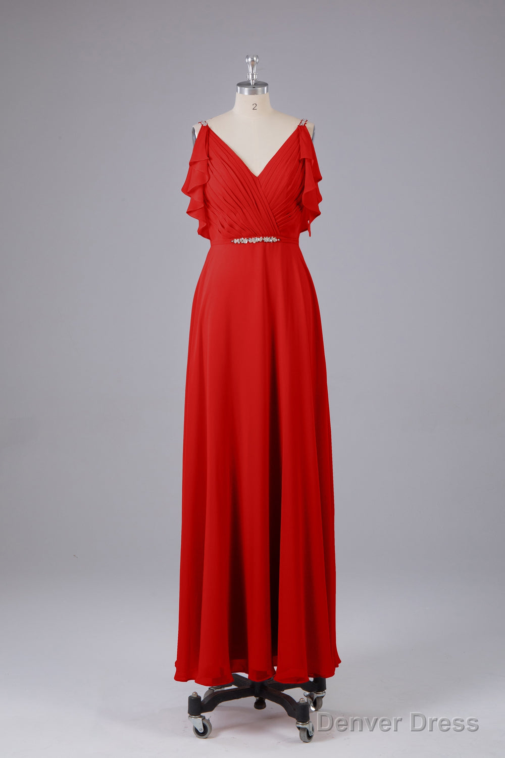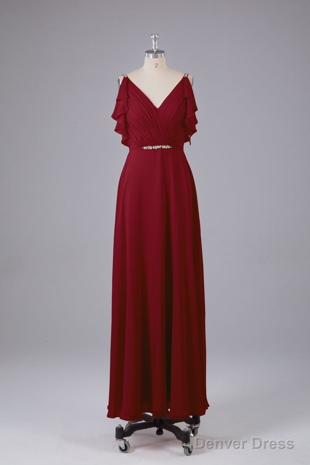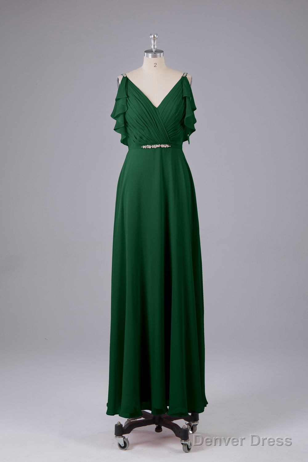 Elegant Chiffon Straps V-Back Long Bridesmaid Dresses