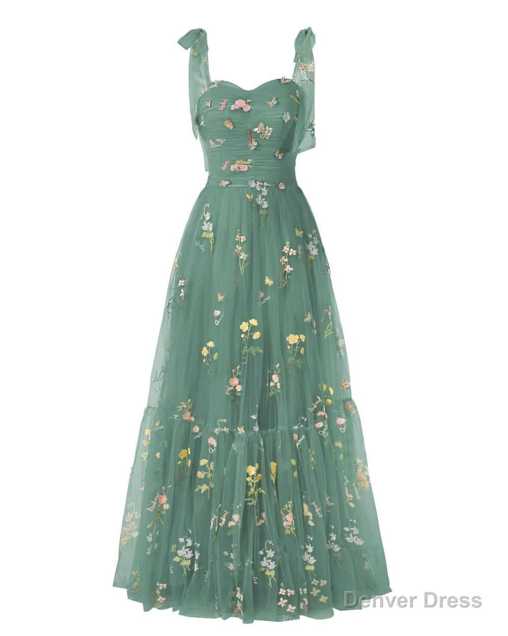 Elegant Embroidery Peacock Prom Dresses Sweetheart Spaghetti Straps A Line Party Dress Long Simple Formal Dress