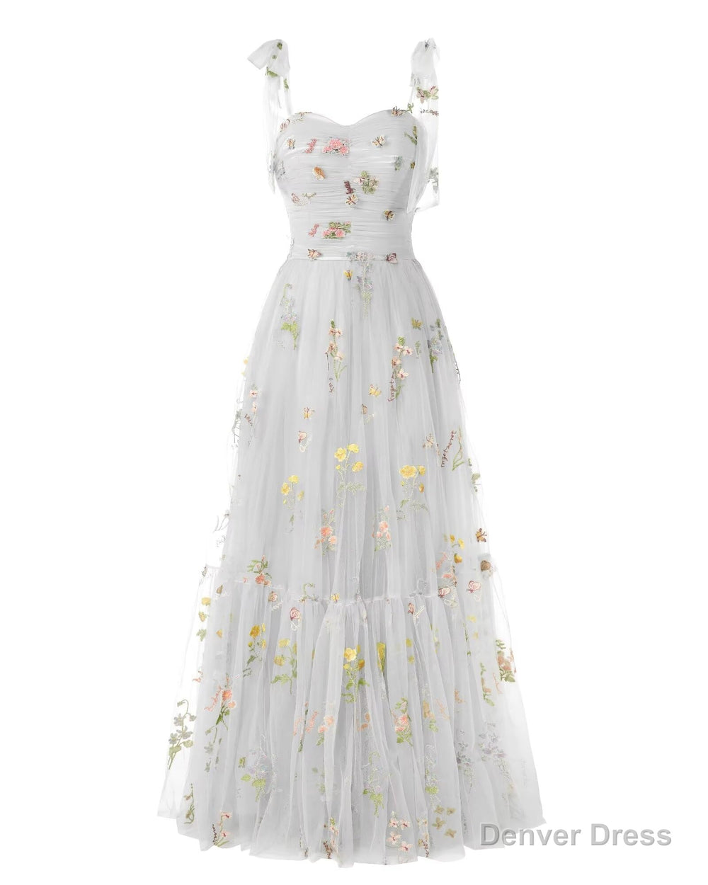 Elegant Embroidery White Prom Dresses Sweetheart Spaghetti Straps A Line Party Dress Long Simple Formal Dress